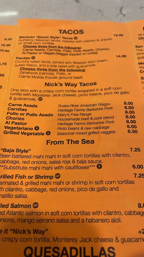 NEW! The same recipe as our award-winning Baja Fish Nick's Way taco, but with beer-battered and fried cauliflower instead! A delicious new veggie option!
