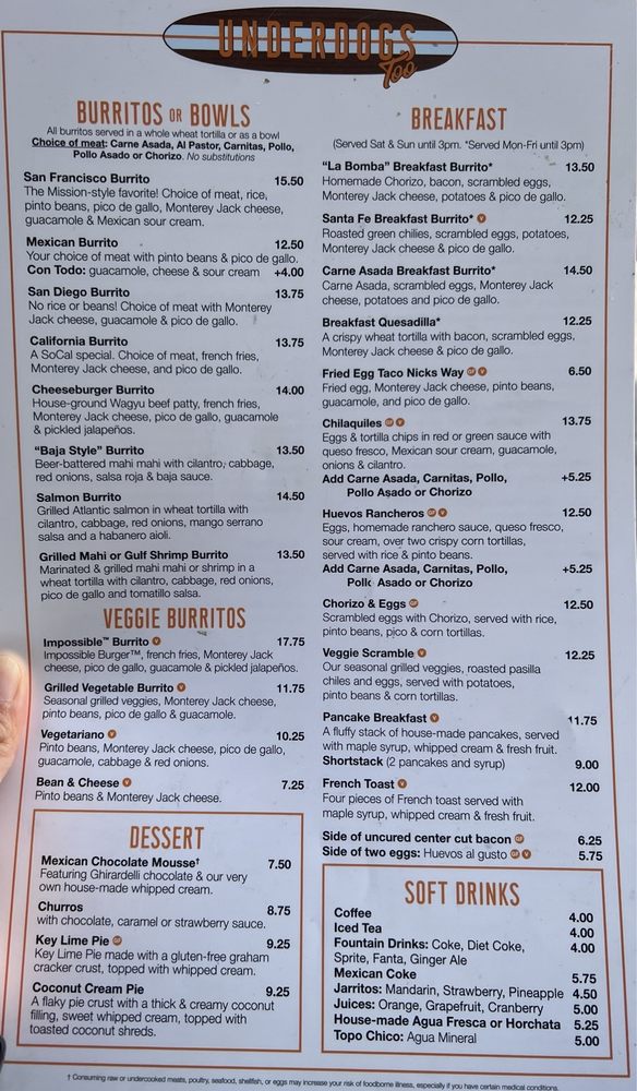 Complement your dining experience with refreshing house-made aguas frescas or indulge in their delightful churros. Underdogs Too is not just a meal—it's a culinary adventure waiting to be explored!